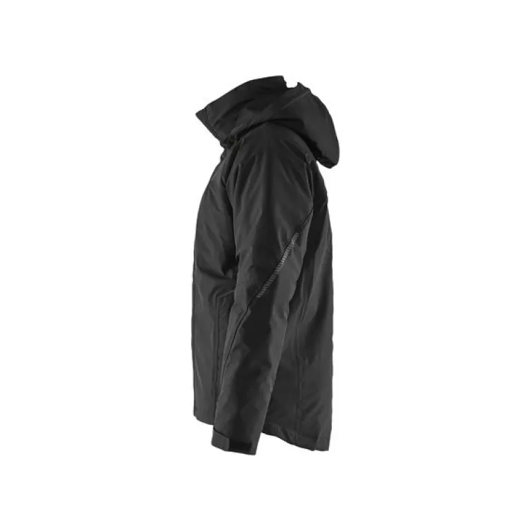 83 % polyamidi, 17 % spandex, laminoitu, vedenkestävä 15000 mm, tuulenpitävä, hengittävä Ret 11,3, stretch, 170 g/m². Konepesu 40 °C, ei rumpukuivausta.