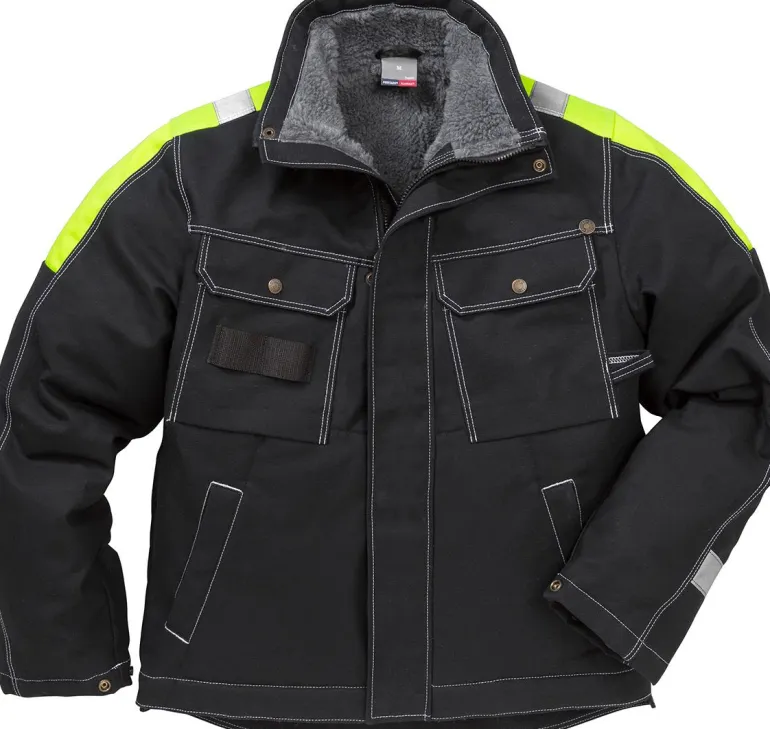 Talvitakki FAS-puuvillaa, likaa, öljyä ja vettä hylkivä. Takissa on keinoturkisvuori, kaulukseen saakka ulottuva vetoketju etuläpän alla, säädettävät hihansuut ja helma sekä heijastavat olkapäät, selkä ja hihat. Talvitakki on Öko-Tex-sertifioitu ja hyväksytty standardin EN 342 mukaisesti.