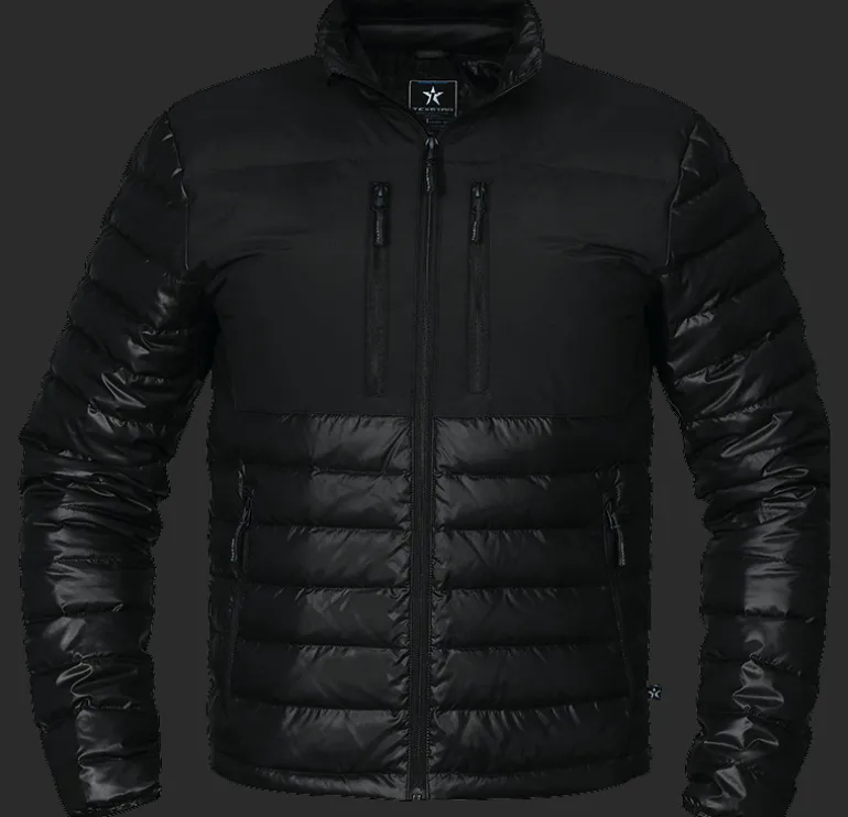 Texstar FJ61 on vuorillinen untuvatakki, jossa tyylikäs kontrastinen kaarroke etukappaleessa, olkapäissä ja selän yläosassa. Hyvä leikkaus takaa istuvuuden. Kaksi rintataskua, kaksi sivutaskua ja yksi vetoketjullinen sisätasku. Joustonauha korvaa hihansuissa resorin ja helman saa kiristettyä tiiviisti säätönyörillä.