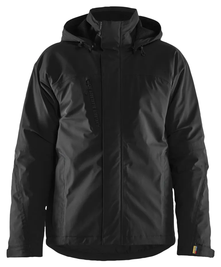 83 % polyamidi, 17 % spandex, laminoitu, vedenkestävä 15000 mm, tuulenpitävä, hengittävä Ret 11,3, stretch, 170 g/m². Konepesu 40 °C, ei rumpukuivausta. Joustava, tuulen- ja vedenpitävä kangas, joka antaa liikkumavapautta.