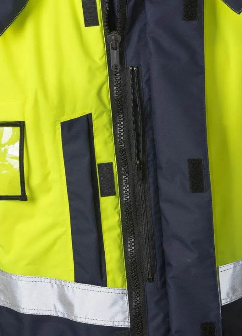 Talvitakki veden- ja tuulenpitävästä Airtech-materiaalista. Hengittävä. Takissa on tikkivuori, irrotettava ja säädettävä vuorillinen huppu sekä fleecevuorillinen kaulus. Takki on Öko-Tex-sertifioitu ja hyväksytty standardin EN ISO 20471 luokan 2 (koot XS–S) ja luokan 3 (koot M–3XL), standardin EN 342 sekä standardin EN 343 3/1 mukaisesti. Materiaali on hyväksytty standardin EN 343 luokan 3/3 mukaisesti. Väri 396 on saatavana tilauksesta.