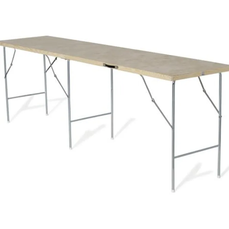 2-osainen tapettipöytä on valmistettu vedenpitävästä koivuvanerista (4 mm). WBP-liimattu, sään- ja kiehumisenkestävä. Sähkösinkityt teräsjalat saksivarsilla ja erikoissaranoilla. Pöydän pituus on 270 cm, leveys 60 cm ja korkeus 85 cm.