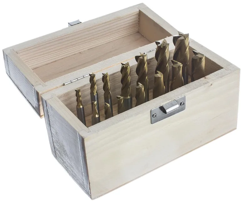 PELA 170670 on 14-osainen TIN-pinnoitettu tappijyrsinsarja HSS. Sisältää 7 kpl. 2-teräinen 7 kpl 4-teräinen. Koko: 4-5-6-8-10-12 ja 14mm. Toimitetaan puulaatikossa.