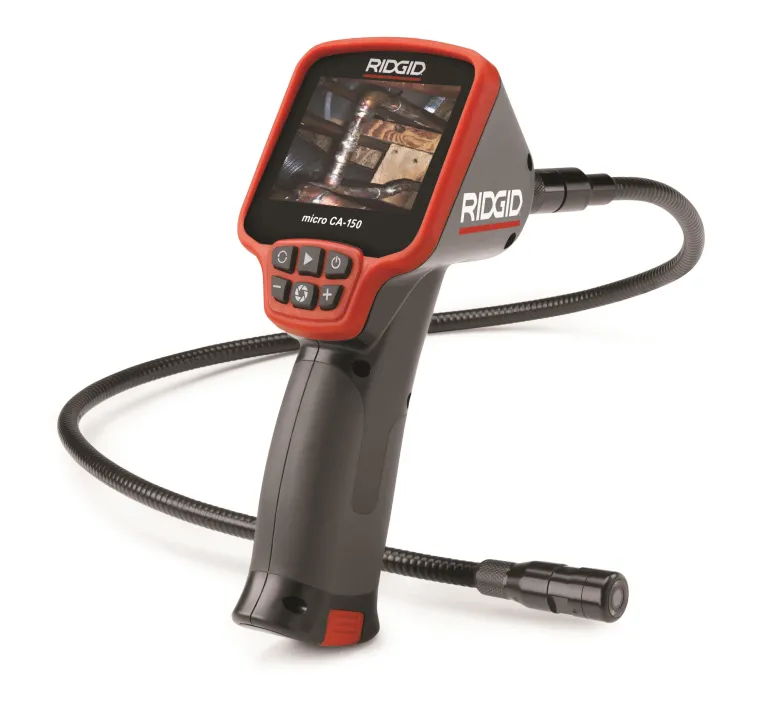 Ridgid CA-150 on tarkastuskamera, jonka avulla voit suorittaa yksityiskohtaisempia visuaalisia tarkastuksia vaikeapääsyisillä alueilla. Suuri 3,5 tuuman värinäyttö antaa nopean diagnoosin ahtaista tiloista, joihin ei näe. Ne valaistaan vedenpitävän kamerapään neljällä kirkkaalla LED-lampulla. Ottaa tarkastuksen aikana jopa 20 pysäytyskuvaa, kameran kaapelia voidaan pidentää jopa 9 metriin. Voidaan täydentää 6 mm:n kamerapäällä.