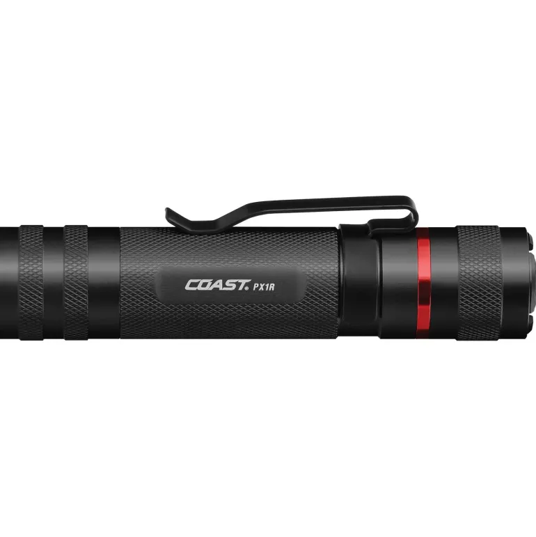 Coast PX1R on ladattava 460 lumenin taskulamppu. Lampussa on Flex Charge Dual Power-järjestelmä, jota voidaan käyttää joko litium- tai alkalivirtalähteellä, tai mikro-USB:llä. Akun USB-liitäntä ja pohjakansi mahdollistavat lataamisen, akkujen ollessaan joko lampun sisällä tai ulkopuolella. PX1R lampussa on Pure Beam Focusing Optic-järjestelmä Twist Focus-toiminnolla, joten voit vaihtaa erittäin leveän valopylvään tai -pisteen välillä, joissa eri etäisyydet ja kirkkaudet – kaikki säädettävissä yksinkertaisella kiertoliikkeellä. Kierrä sitten spot-asetus ja valo suuntautuu alaspäin siirtymähalon avulla, mikä mahdollistaa laajan näkökentän tiukan pistesääteen ympärille.