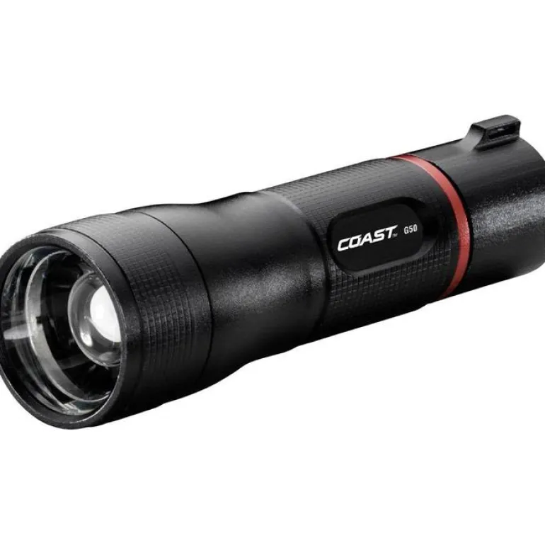 Coast G50 on taskulamppu, jonka valokeila säädettävissä leveästä pistemäiseksi. Puhdas valo ilman tummia reuna-alueita perustuu Pure Beam Focusing Optic System -tekniikkaan. Taskulampun ulkopinta on iskunkestävää mustaa alumiinia.