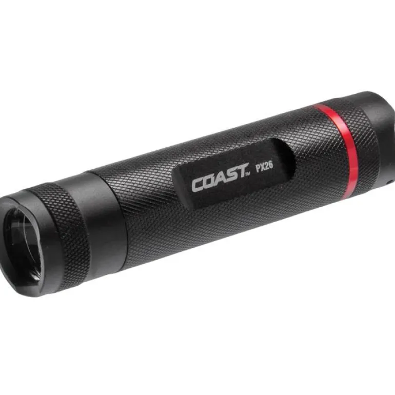 Coast PX26 on kätevä taskulamppu, jossa on helppo valonsäätö ja Bulls-Eye-valokeila, eli laajemmalle näyttävä häivevalo, jonka sisällä on tarkka kohdevalo. 2 tunnin käytön jälkeen valon teho alkaa heiketä, mutta lamppu valaisee vielä usean tunnin ajan. Poliisin, puolustusvoimien, teollisuuden ja käsityöläisten arvostama taskulamppu.