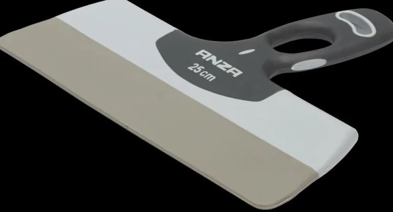 Tasoituslasta suipennettulla kumiterällä epätasaisten pintojen tasoitukseen. Voidaan käyttää myös kaakeleiden saumauksessa. Ergonominen kahva.