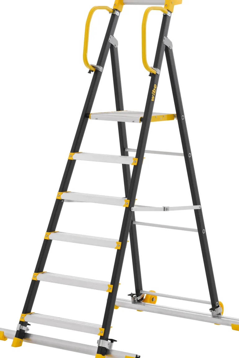 Tukevat, vakaat ja kestävät tasotikkaat jokapäiväiseen ammattikäyttöön. Erittäin suuri metallitaso (400 x 400 mm) karkealla kaksisuuntaisella liukastumissuojalla, joka antaa sinulle runsaasti tilaa liikkua ergonomisesti ja tehokkaasti työssäsi. Kaide kolmella sivulla tarjoaa turvallisen työtilan putoamissuojalla – tikkaat ovat kokoontaitettavat kuljetuksen helpottamiseksi. Isolla metallihyllyllä on runsaasti tilaa työkaluille ja materiaaleille, jotta voit työskennellä kädet vapaina. Yhdistetyt alumiinituet, jotta voit katsoa molemmille puolille yhdellä kädellä kiinni pitäen. FDS-ruuveilla toteutettu innovatiivinen kiinnitysteknologia tarjoaa vakaan rakenteen minimaalisella joustolla ja todella pitkällä käyttöiällä. Kuljetuksen helpottamiseksi 6- ja 8-askelmaisissa malleissa on pyörät tukipuolella. ”Bra arbetsmiljöval” -hyväksytty, hyvä valinta turvallisempaan työskentelyyn, 2 metriin asti (taso 3). Valmistettu sertifioidusta alumiinista, joka on valmistettu uusiutuvista energialähteistä, mikä pienentää hiilijalanjälkeä merkittävästi.
