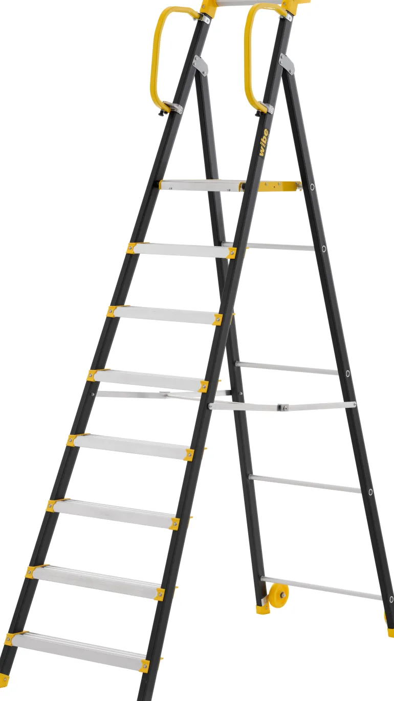 Tukevat, vakaat ja kestävät tasotikkaat jokapäiväiseen ammattikäyttöön. Erittäin suuri metallitaso (400 x 400 mm) karkealla kaksisuuntaisella liukastumissuojalla, joka antaa sinulle runsaasti tilaa liikkua ergonomisesti ja tehokkaasti työssäsi. Kaide kolmella sivulla tarjoaa turvallisen työtilan putoamissuojalla – tikkaat ovat kokoontaitettavat kuljetuksen helpottamiseksi. Isolla metallihyllyllä on runsaasti tilaa työkaluille ja materiaaleille, jotta voit työskennellä kädet vapaina. Yhdistetyt alumiinituet, jotta voit katsoa molemmille puolille yhdellä kädellä kiinni pitäen. FDS-ruuveilla toteutettu innovatiivinen kiinnitysteknologia tarjoaa vakaan rakenteen minimaalisella joustolla ja todella pitkällä käyttöiällä. Kuljetuksen helpottamiseksi 6- ja 8-askelmaisissa malleissa on pyörät tukipuolella. ”Bra arbetsmiljöval” -hyväksytty, hyvä valinta turvallisempaan työskentelyyn, 2 metriin asti (taso 3). Valmistettu sertifioidusta alumiinista, joka on valmistettu uusiutuvista energialähteistä, mikä pienentää hiilijalanjälkeä merkittävästi.