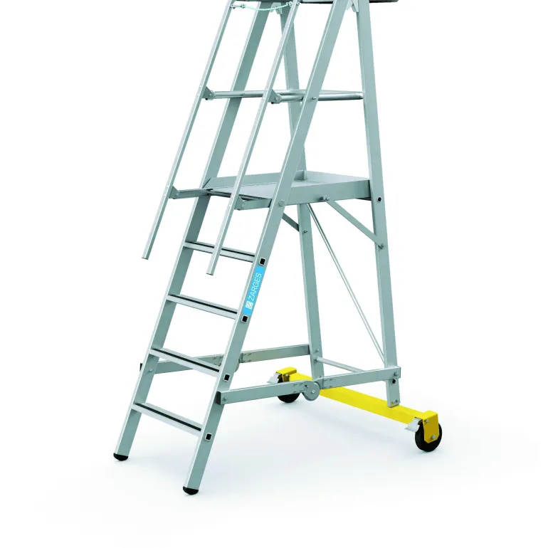 Tasotikkaat, joita käytetään hyllytyöskentelyssä hyvän siirrettävyyden ansiosta. Tikkaissa on alumiininen työtaso, jonka koko on noin 600 x 630 mm ja jonka kolmella sivulla on turvakaiteet.