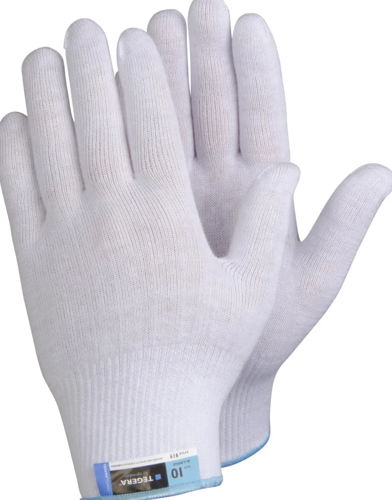 TEGERA® 919 on ohut, pehmeä ja hengittävä valkoinen tekstiilikäsine, jossa hyvä istuvuus ja sormenpäätuntuma. Valmistettu 15 gg puuvillaneuloksesta, ei saumoja. Vähentää saastumisen ja sormenjälkien riskiä sekä naarmuja herkillä pinnoilla. Hienomekaanisiin asennustöihin ja tutkimustöihin kuivissa ympäristöissä.