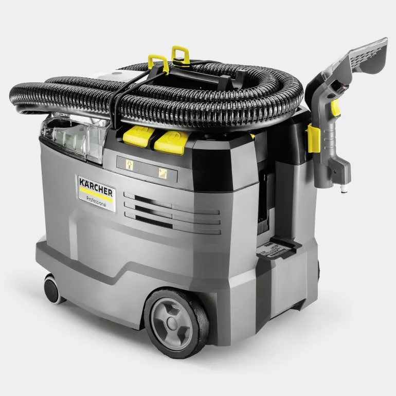 Toimii myös märkäkuivaimurina: pesuaine suihkutetaan paineen avulla tekstiilikuitujen sisään ja tehokas imutoiminto poistaa pesuveden ja irronneen lian. Tehokkaan imutoiminnon ansiosta pestävät pinnat kuivuvat nopeasti käyttövalmiiksi.