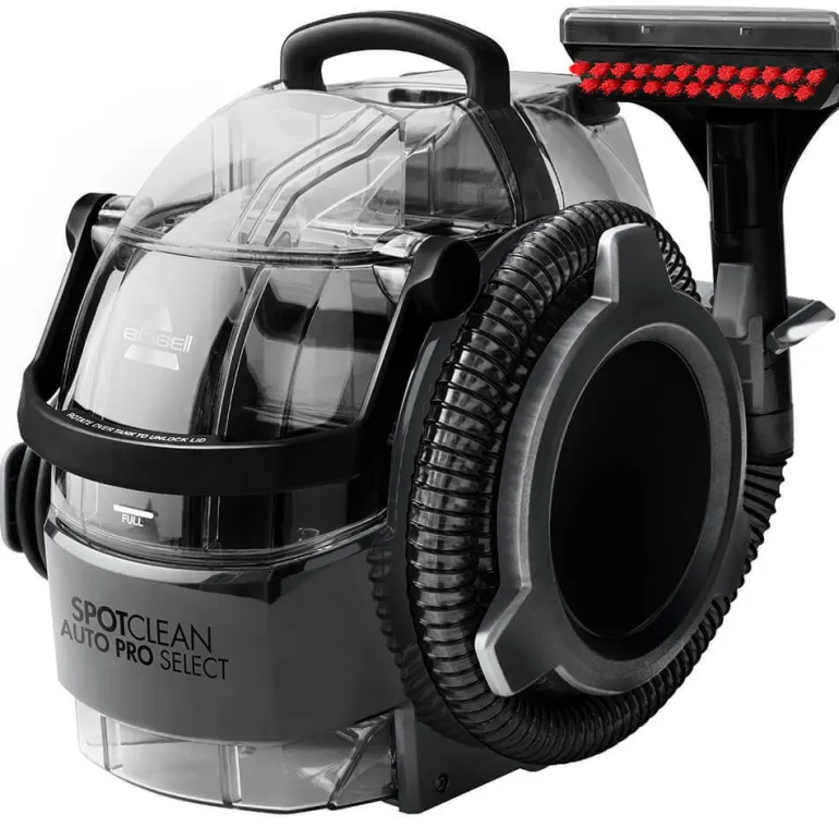 Kannettava SpotClean Auto Pro Select matto- ja tekstiilipesuri 750 W, joka poistaa tahrat helposti ja nopeasti. Liukuvalla XL-rakosuulakkeella pääset käsiksi ahtaisiinkin paikkoihin, kuten auton sisätilojen pinnat perusteellista puhdistusta varten.