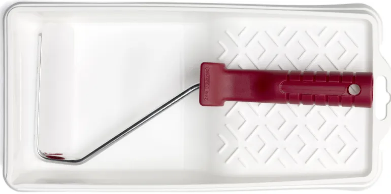 Elite -telasetti huopatelalla 10 cm, joka antaa tasaisen ja hienon pinnan. Soveltuu hyvin esim. kalusteiden, ovien ja keittiökalusteiden maalaukseen.