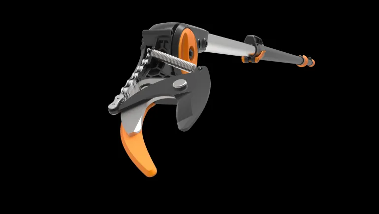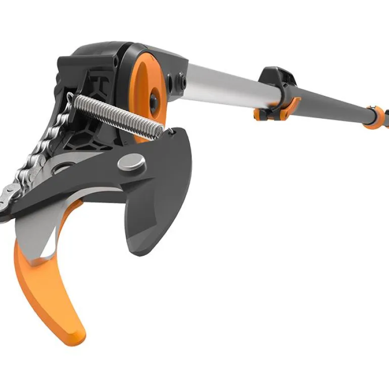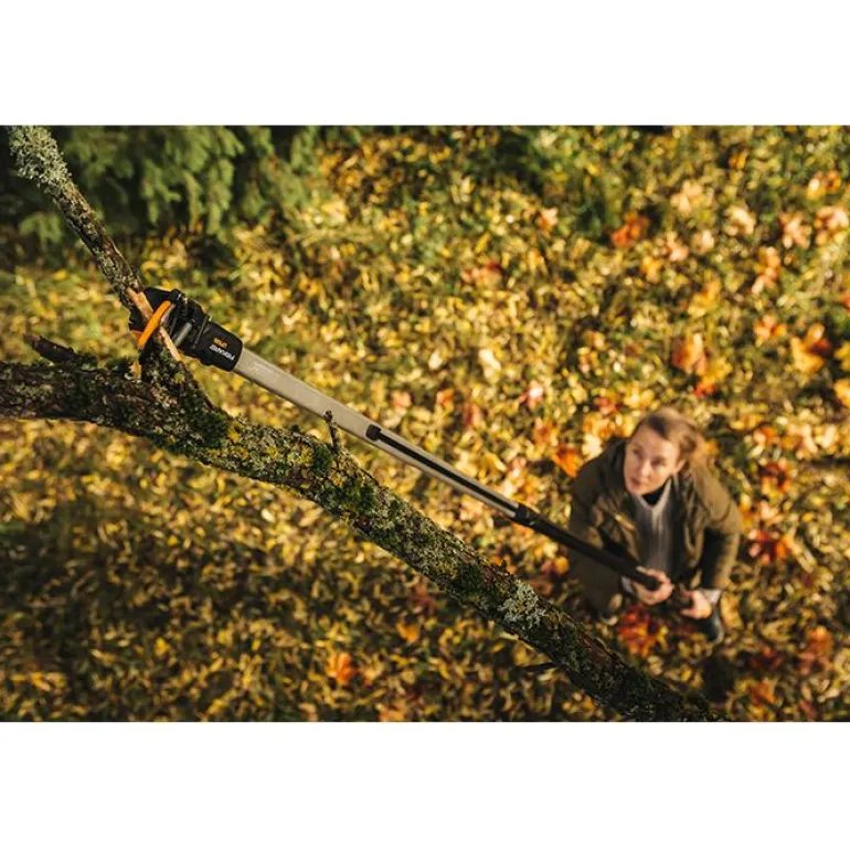 Fiskars UPX86 on puutarhan teleskooppileikkuri säädettävä varren pituus 2,4–4 metriä, maksimiulottuma 6 metriä. Jopa 230° säädettävä leikkuupää.
