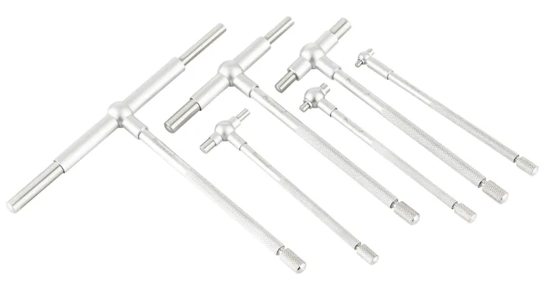 Teleskooppipistomittasarja sisältäen kuusi pistomittaa kokoväliltä 8-150 mm kaksipistemittausta varten. Pistomitat ovat itsekeskittäviä ja niillä on mattakromattu pintaviimeistely.