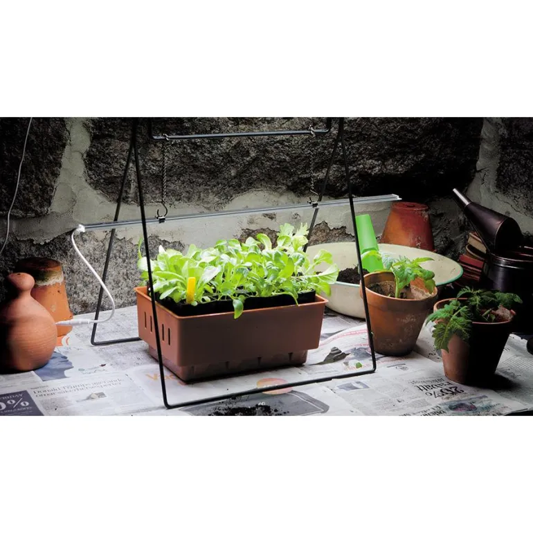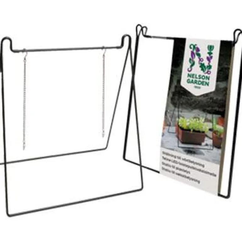 Tukeva teline Nelson Garden -kasvivalaisimille, tuotenro 5586, 5566 ja 5567. Teline on helppo avata ja taittaa kokoon. Kokoon taitettuna se vie vain vähän tilaa. Valaisin ripustetaan telineeseen pakkauksessa mukana tulevien ketjujen ja koukkujen avulla (sisältyy toimitukseen). Kasvivaloa käytetään esikasvatuksessa tai lisävalona sisällä. Valaisin sopii käytettäväksi yhdessä Nelson Garden -lämpömaton (tuote 5560) kanssa. Alalämmön avulla siemenet itävät ja pikkutaimet juurtuvat nopeasti.