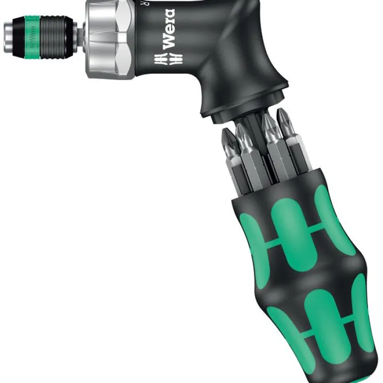Teräruuvain, jossa on pistoolikahva ja 6 kpl sisäänrakennettuja teriä. Sisältää terät: PH1, PH2, PZ1, PZ2, TX20 ja TX25.