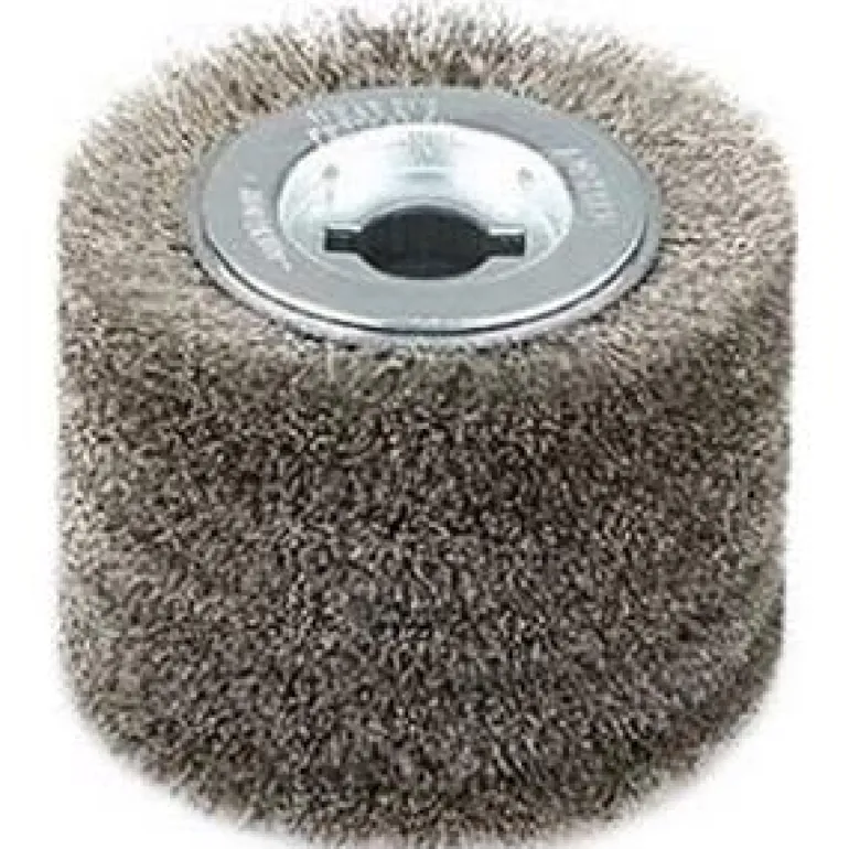 Elastinen VA-teräslankaharja, jonka mitat ovat 100 Ø x 70 mm ja jota käytetään vanhan maalin kuorintaan, kaavintaan ja hiontaan.