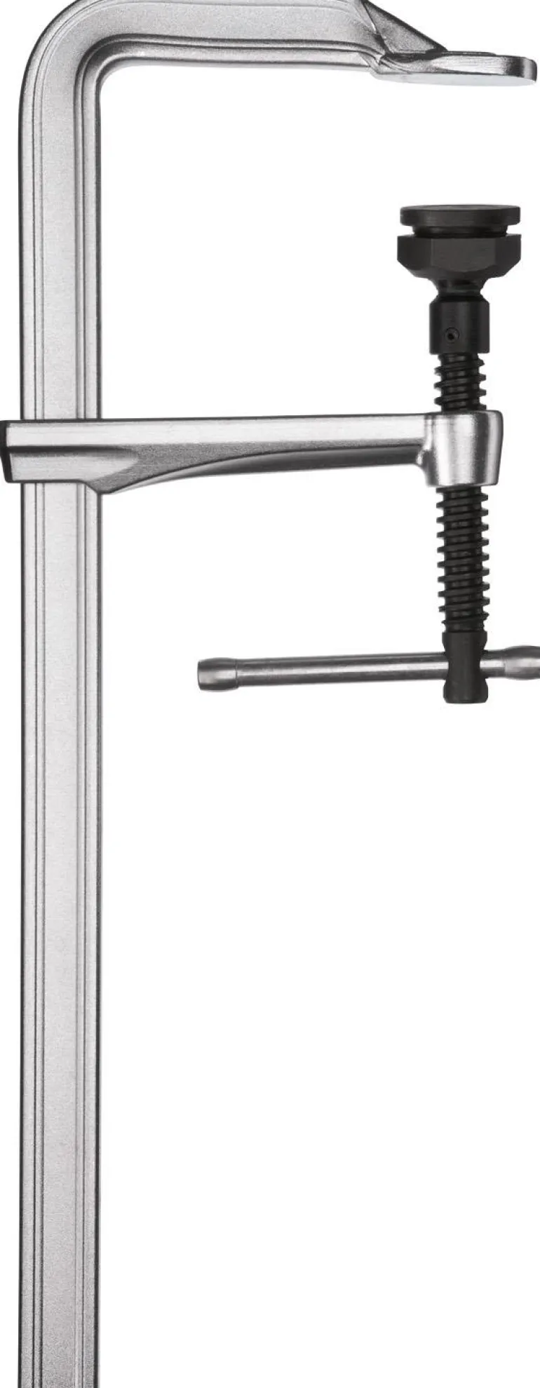 Bessey SG50M -teräspuristin, aukkoväli 500 mm ja syvyys 140 mm. Teräspuristimen puristusvoima on enintään 8500 N. Lämmönkestävä erityispainelaatta sintratulla terässisustalla pidentää käyttöikää.