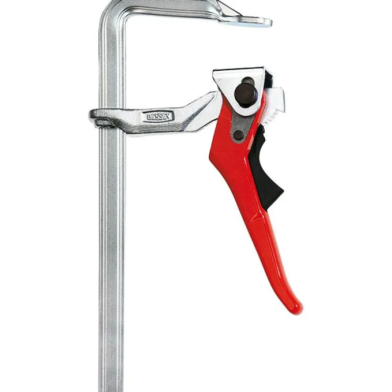 Bessey GH25 -teräspuristin, aukkoväli 250 mm ja syvyys 120 mm. Teräspuristimessa on pikalukitus ja se on jopa 5 kertaa nopeampi kuin perinteiset puristimet, puristusvoima 8000 N.