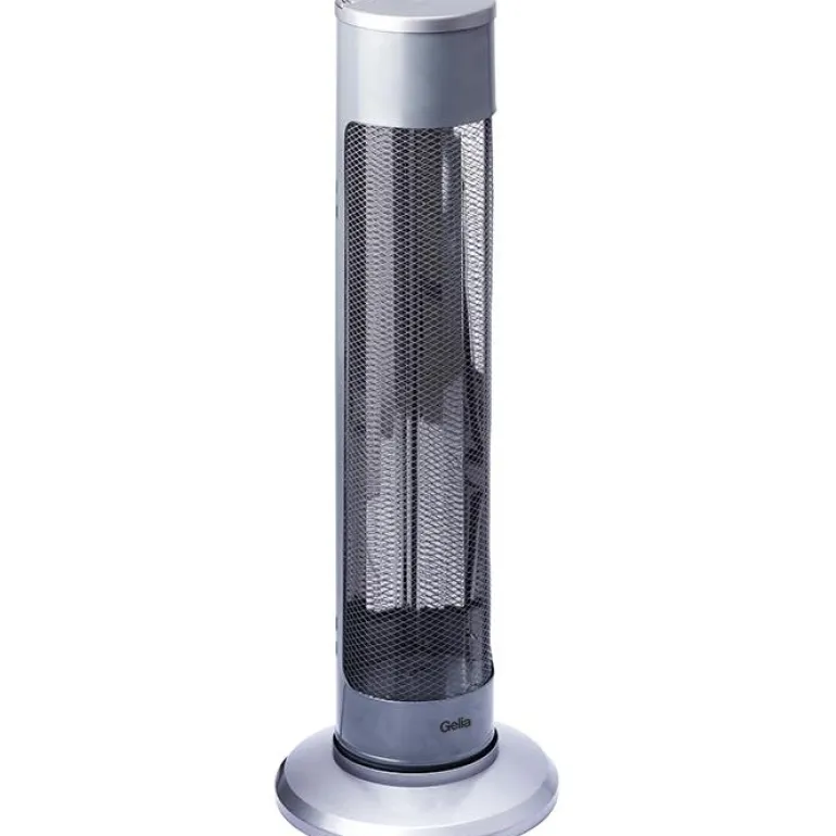 Gelia 4000090011 on oskilloiva terassilämmitin, jossa on kaksi tehoasetusta (450 W ja 900 W), hiilikuituputki ja kaatumissuoja. Jalustassa on kantokahva. Toimitus sisältää 1,6 metrin liitäntäkaapelin.