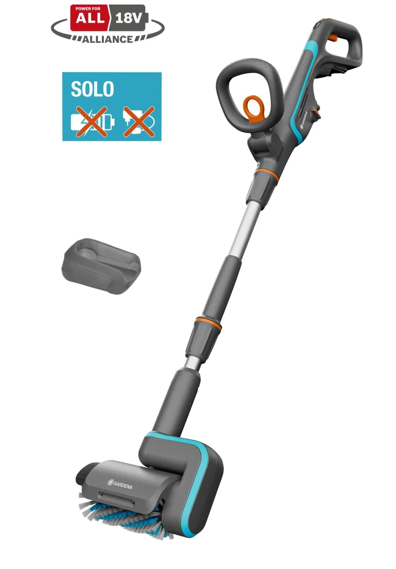 Akkukäyttöinen terassipesuri, jolla voit puhdistaa puupinnat perusteellisesti. Pesurissa puupinnoille optimoitu harjamuotoilu.