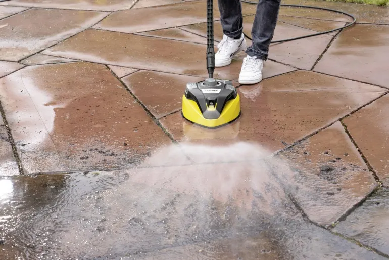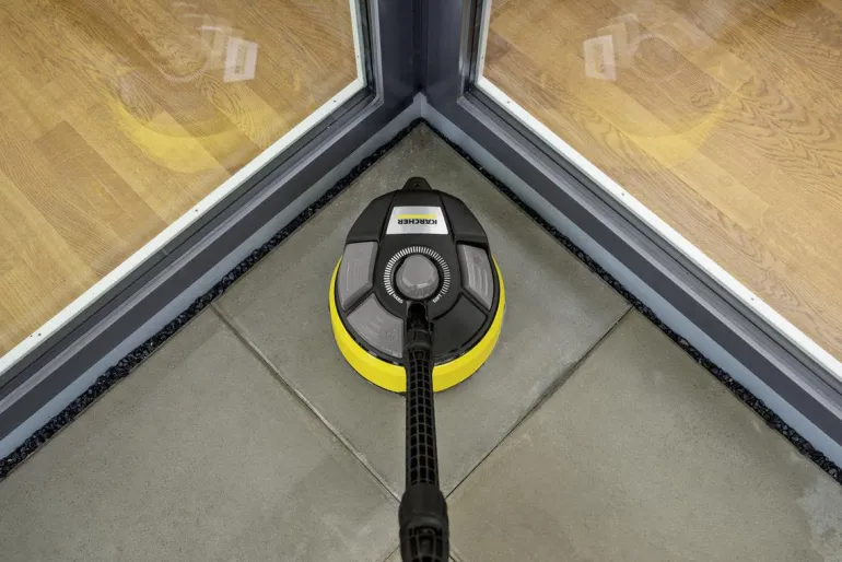 Terassipesuri halkaisijaltaan 27,5 cm, korkeuden säätö, suuttimet, jotka käynnistetään/pysäytetään jalalla. Suurempien pintojen puhdistamiseen.