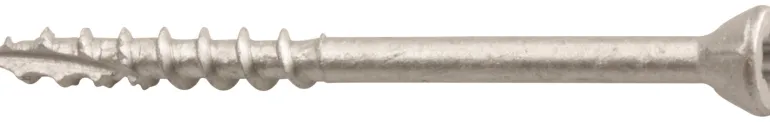 Uppokantainen terassiruuvi, joka on tarkoitettu terassilautojen ja kaiteiden kiinnittämiseen puukoolaukseen. Sopii sekä sisä- että ulkokäyttöön.