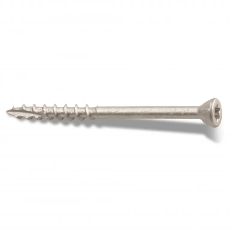 Terassiruuveja käytetään terassilautojen ja aitojen kiinnitykseen puupalkkeja vasten. Terassiruuvi, uppokanta. Valmistettu erikoisteräksestä, pinnoitettu Protect4 pintakäsittelyllä (tyyppihyväksytty ruosteensuojapinnoite korroosioluokassa C4). Esiporatut jyrsintäurat kärjissä. Kanta on varustettu leikkaavalla uralla, joka upottaa ruuvin. Testattu kestämään 80° taivutuskulma (vakio: 25°).
