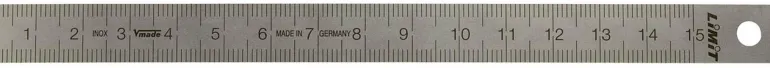 Mattakromattu, ruostumatonta terästä. Erittäin ohut ja joustava. Asteikko mm/mm ylä- ja alareunassa.