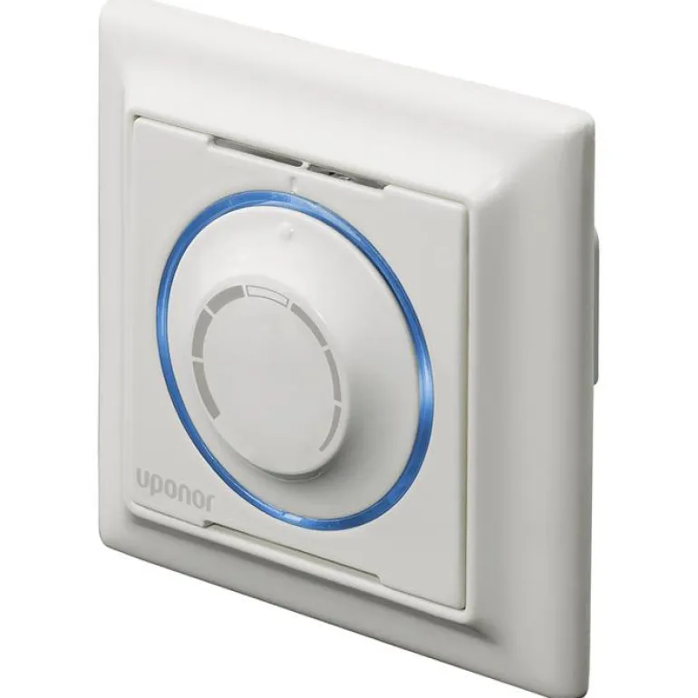 Uponor Smatrix Base T-144 on johdollinen termostaatti asennettavaksi upotettavaan laiterasiaan. Termostaatin jännite on 5 V, ja sen mitat ovat 80 x 80 mm. Malli kytketään nelijohtimisella kaapelilla.