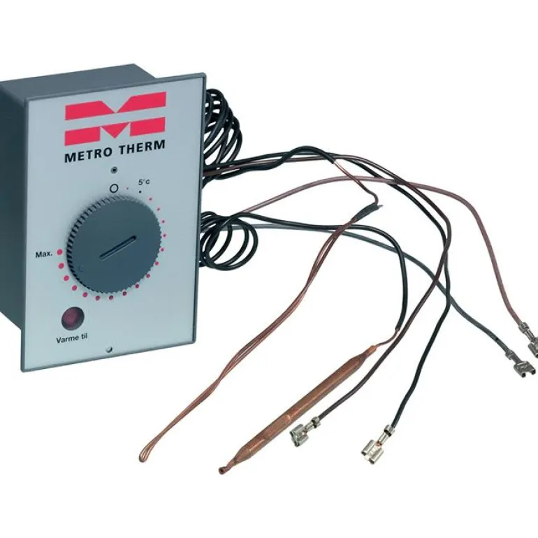 Täydellinen termostaattirasia Metro Thermin lämminvesivaraajalle, varustettu ylikuumenemissuojalla ja valaisimella.
