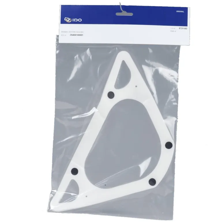 Ifö/IDO/Porsgrund Aniara -tiiviste WC-istuimelle, jossa pintahuuhtelusäiliöt paikallaan. Vaahtomuovia. Valkoinen, 230x4x350 mm (PxLxK).