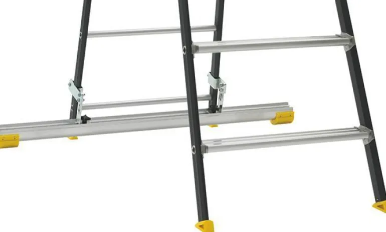 Alumiininen tikasjalusta. Helppo asentaa ja voidaan irrottaa tarvittaessa. Tikasjausta vähentää tikkaiden kallistumista sivusuunnassa, mikä on yleisin A-tikkaiden onnettomuuksien aiheuttaja.