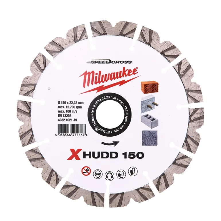 Milwaukee 4932492148 PREMIUM SPEEDCROSS XHUDD 125 mm -timanttikatkaisulaikka, jonka tarkasti sijoitellut timantit tuottavat erinomaisen katkaisujäljen. Soveltuu kaikenlaisille koville rakennusmateriaaleille. 12 mm:n segmenttikorkeus.