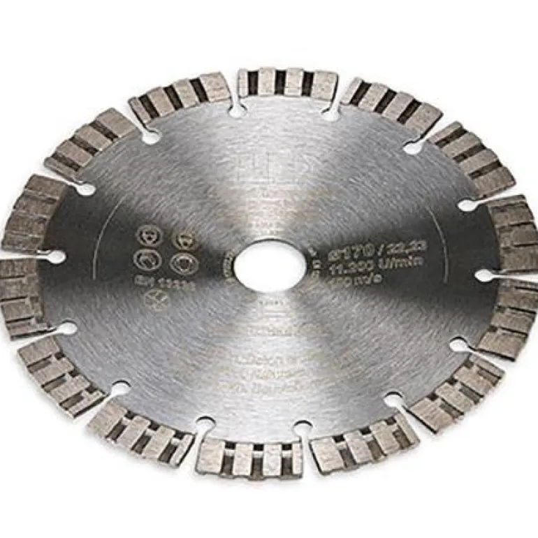 170 mm timanttikatkaisulaikka luonnonkivelle ja betonille. Laikassa on segmentoitu leikkuupinta ja tärinävaimennus.