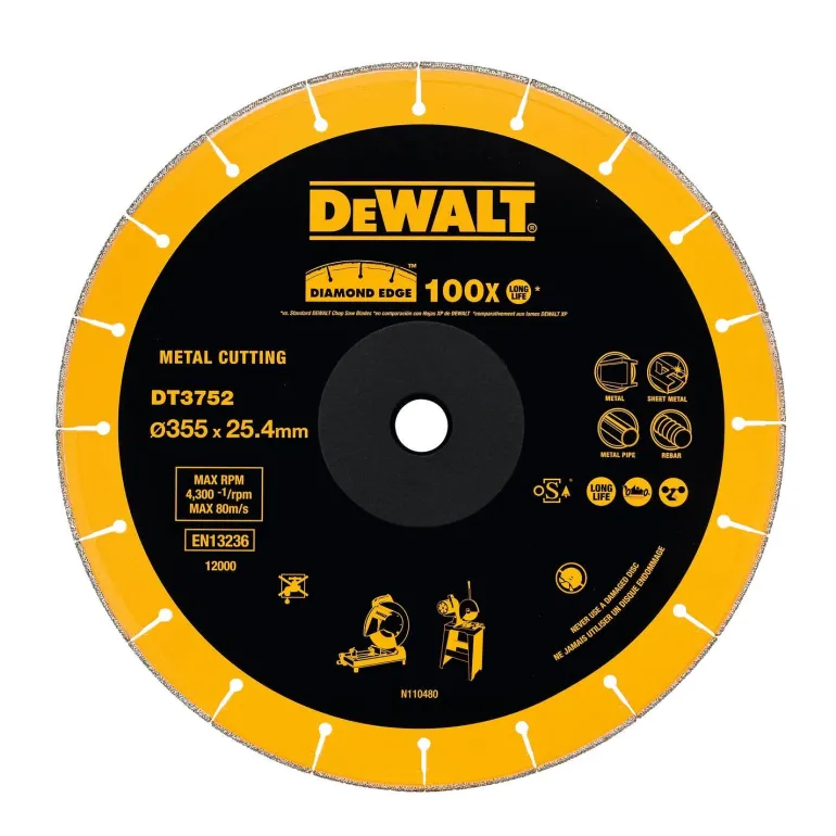 Vankka laserhitsattu timanttikatkaisulaikka, joka kestää jopa 100 kertaa pidempään kuin perinteinen katkaisulaikka. Katkaisulaikka on ihanteellinen metallin leikkaamiseen ja toimii optimaalisesti nopeudella 4000 rpm.