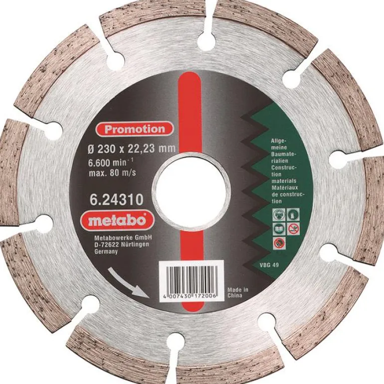 Timanttikatkaisulaikka kaikille tavanomaisille rakennusmateriaaleille, esim. betonille, pesubetonille, kovalle hiekkakivelle ja savitiilelle. Mitat – 230×22,23 mm.