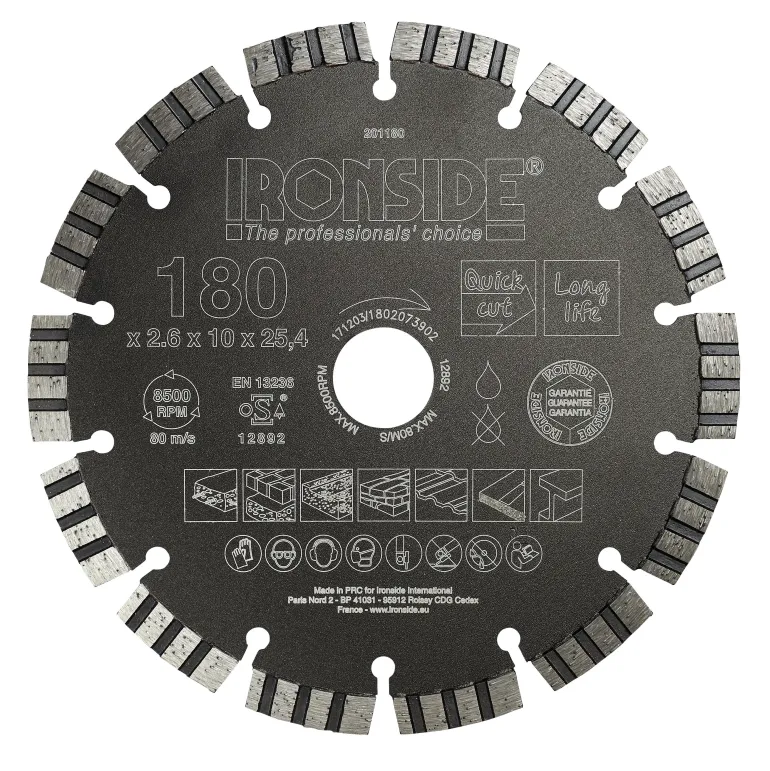 494628: Timanttilaikka, yleiskäyttöinen. Laserhitsaus. Sisärengas 22,23 mm + 20 mm. Yleiskäyttöinen rakennusmateriaalille, pitkä kestoikä. Nopea leikkaus. Kuiva tai märkä. Betonille, tiilelle, kivelle.