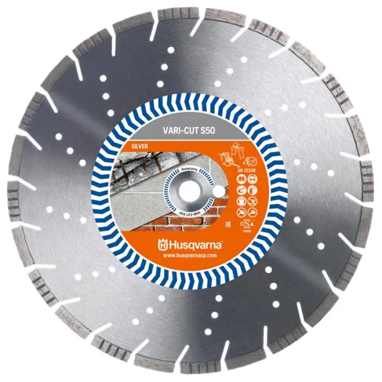 Husqvarna VARI-CUT S50 on timanttilaikka, halkaisija 350 mm, kiinnitysreiän halkaisija 25,4 mm. Optimoitu betonin leikkaamiseen mutta toimii erinomaisesti myös kovaan kiveen ja rautaan.