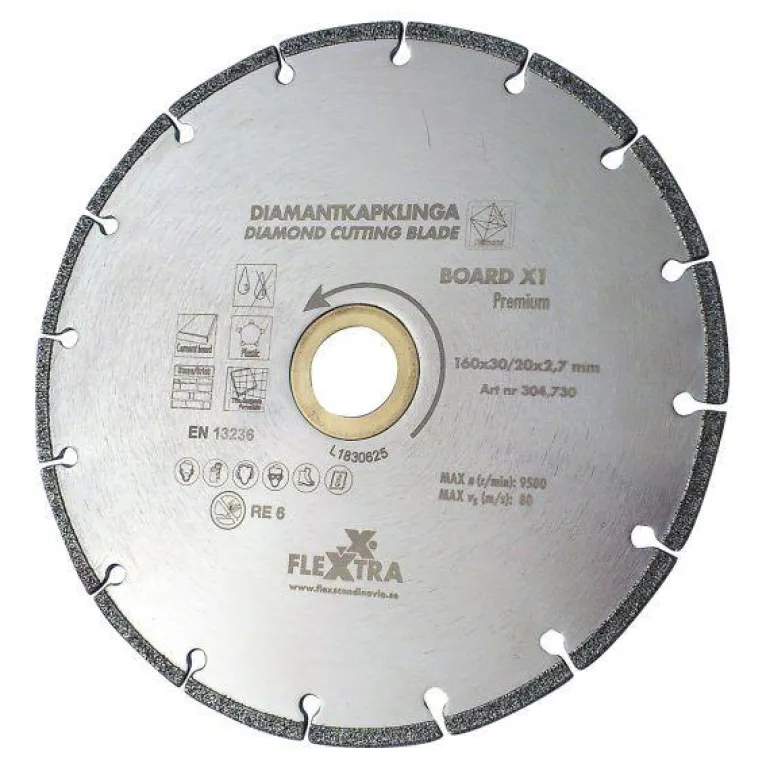 Flexxtra 304730 on timanttilaikka 160 mm, joka leikkaa kuluttavia levymateriaaleja erittäin hyvin.
