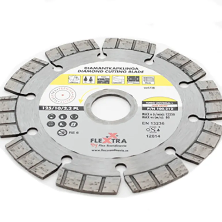 Tehokas yleiskatkaisulaikka, pitkä käyttöikä, leikkaa nopeasti useimpia rakennus- ja kivimateriaaleja. Turbosegmentti johtaa pois lämpöä ja hiontapölyä, mikä nopeuttaa leikkaamista ja pidentää laikan käyttöikää
