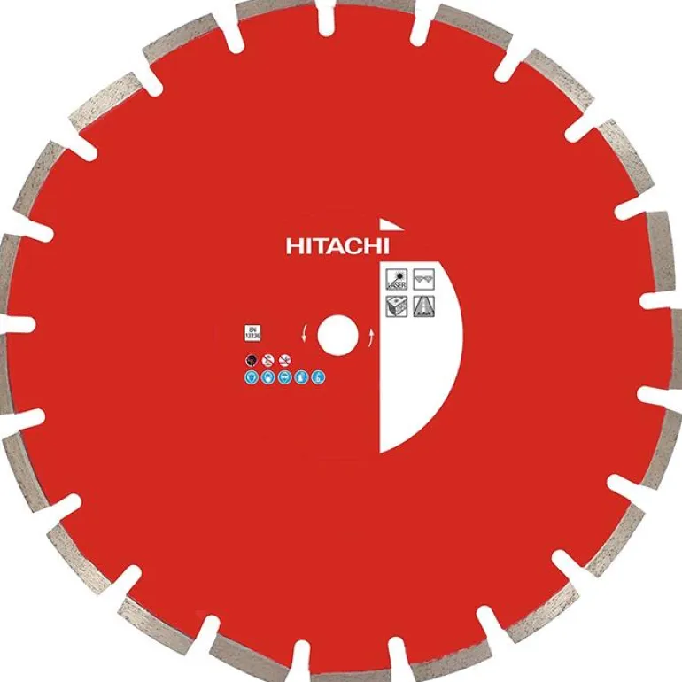 Laserhitsattu timanttilaikka 350 x 25,4 mm asfaltin ja asfalttipohjaisten materiaalien, pehmeiden materiaalien, kuten kalkkikiven, hiekkakiven, Porotonin ja kevytbetonin, leikkaamiseen. Sopii HiKOKI CM75EBP -katkaisukoneeseen.
