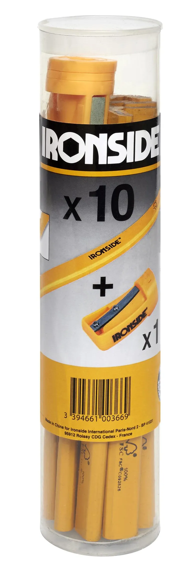 Kantikas, keltaiseksi maalattu 180 mm pitkä kynä, jossa keskikova lyijy. Toimitus 10 kpl:n muovirasiassa, jossa mukana 1 kpl teroitin.