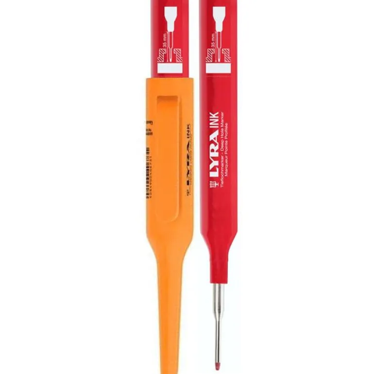 Tussikynä syviin reikiin tehtäviä merkintöjä varten. 35 mm pitkä kärki. Täydellinen useimmille pinnoille tehtäviin merkintöihin, kuten puuhun, kaakeliin, klinkkereihin, lasiin jne. Ominaisuudet Tussikynä syviin reikiin tehtäviä merkintöjä varten. 350mm pitkä kärki.Pitkä kärki, jonka avulla on helppo tehdä konsolien läpi esimerkiksi ruuvireikiä.Täydellinen useimmille pinnoille tehtäviin merkintöihin, kuten puuhun, kaakeliin, klinkkereihin, lasiin jne.