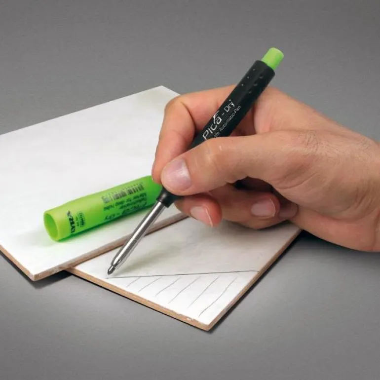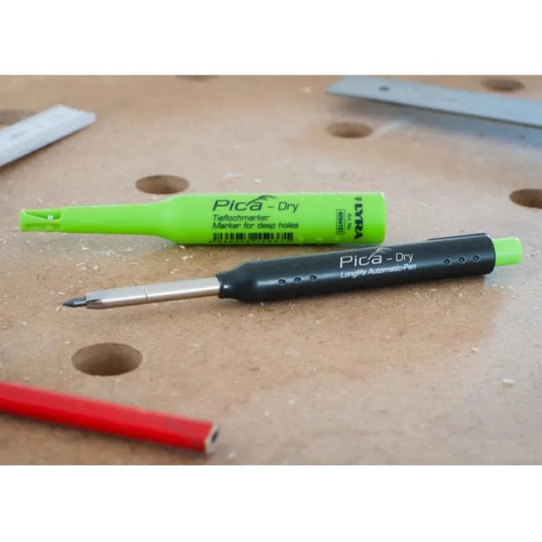Suosittu timpurin kynä, jonka päässä on teroitin. Täydellinen useimmille pinnoille tehtäviin merkintöihin, kuten puuhun, kaakeliin, klinkkereihin, lasiin jne. Ihanteellinen syvien reikien merkkaukseen pitkän kärjen ansiosta.