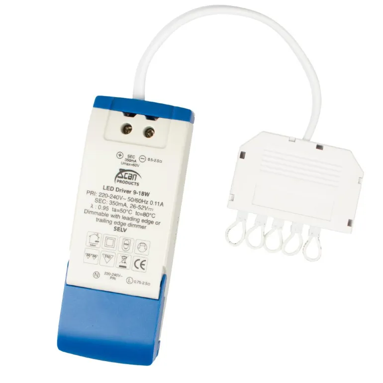 Toimilaitesarja, joka on himmennettävissä markkinoiden yleisimmillä himmentimillä. Kytkentärasia, jossa on 6 lähtöä.