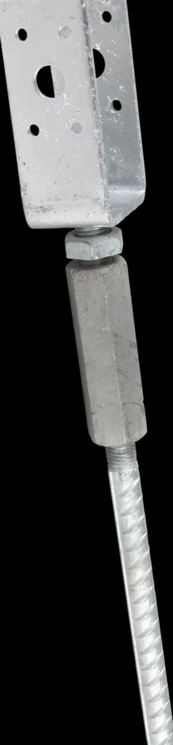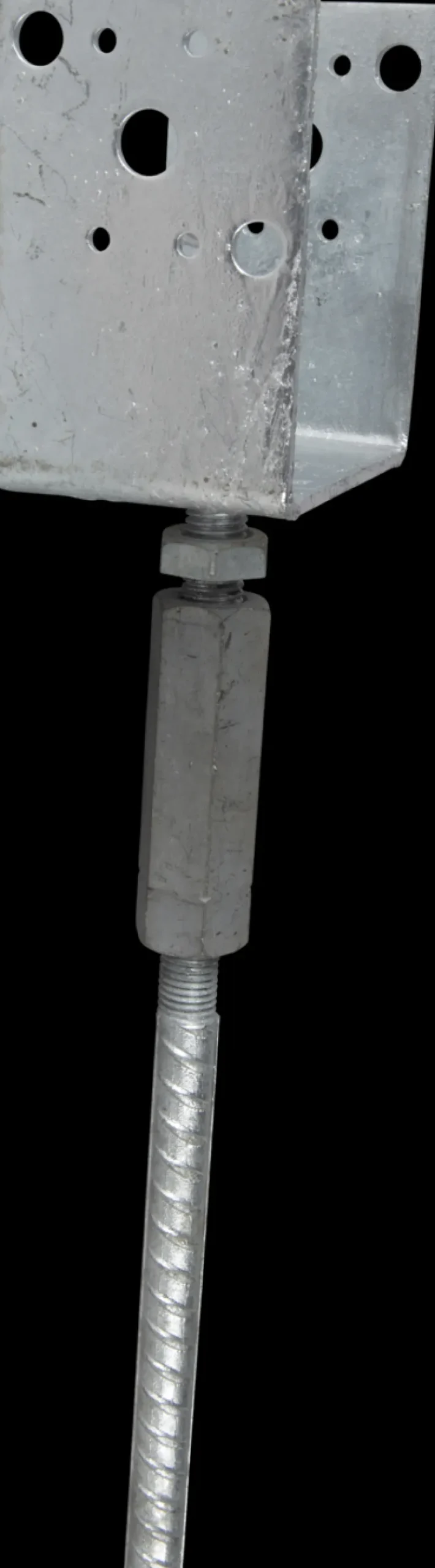 Säädettävä pilarikenkä, malli UJ, valetaan betoniin tai kiveen. Pylväs tai tolppa kiinnitetään pilarikenkään kuormituksen mukaan valittavalla ruuvilla.